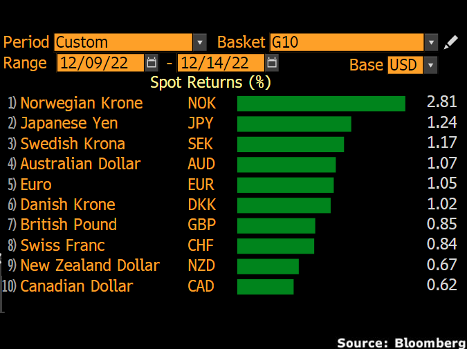 All eyes will be on the Federal Reserve meeting this evening, followed by the BoE and ECB meeting on Thursday. The Fed is widely expected to shift into lower gear on rates in December, hiking by 50 basis points compared to the 75-basis point increases they’ve done over the last four policy meetings. Markets widely expect the ECB and BoE to also hike rates by 50 basis points this month. Ultimately, whatever the outcome of the upcoming policy meetings, it may set the tone for FX markets for the rest of 2022.