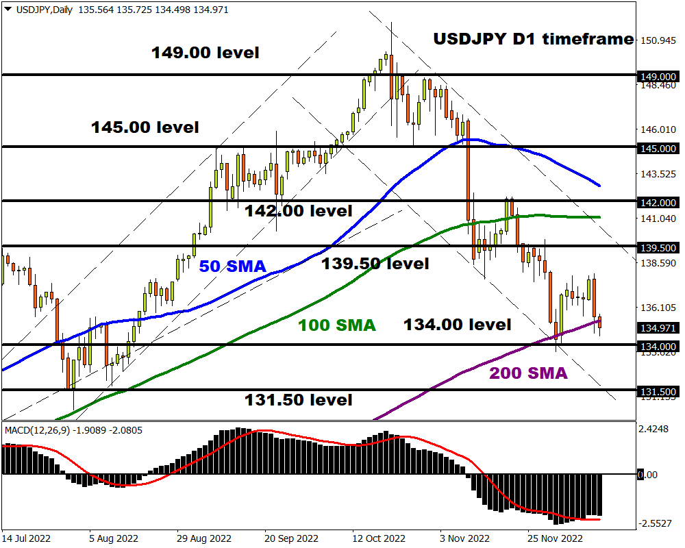 The USDJPY could be gearing up for a steeper decline if prices secure a solid daily close below 134.00. There have been consistently lower lows and lower highs while prices are trading just below the 200-day SMA. Bears are certainly in control with another bout of dollar weakness opening a path toward 131.50.