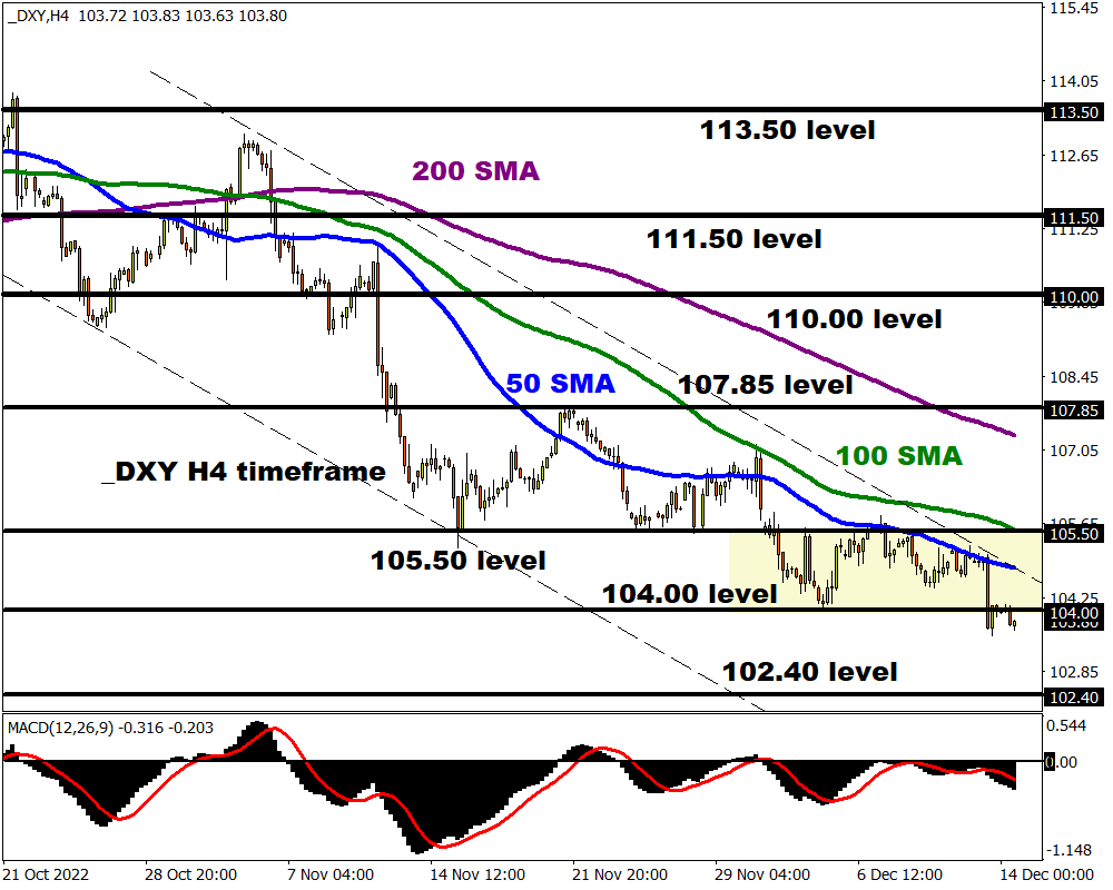 The dollar got no love on Tuesday after US consumer prices rose less than expected for a second straight month. Bear charged into the scene, dragging the Dollar Index (DXY) below 104.00 for the first time since June 2022. Prices remain heavily bearish on the H4 timeframe with the downside momentum potentially sending prices towards 102.40. A move back above 104.00 could result in a rebound toward 105.50.
