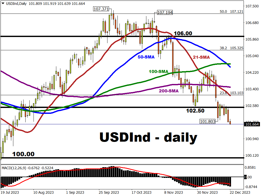 The dollar has made fresh cycle lows as markets head into the holiday period and a time of thin liquidity and volumes.
