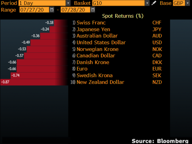The Republicans have put forward their latest relief package, but it does not have the Democrats support as yet so expect more delay and discussions with current support programs expiring soon. The Fed meeting takes centre stage tomorrow with the market expecting soothing dovish words from Chair Powell. A more sober assessment of reality, similar to what happened during the June meeting may hurt risk appetite.