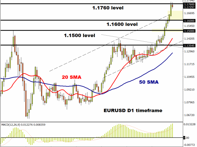 Over the past two weeks, the currency pair has jumped over 400 pips thanks to renewed buying sentiment towards the Euro and a depressed US Dollar. While prices have the potential to push higher once the 1.1760 level is conquered, a technical correction could be around the corner. If 1.1760 proves to be reliable resistance, the EURUSD is likely to retrace back towards 1.1670 – 1.1620 regions before rebounding higher.