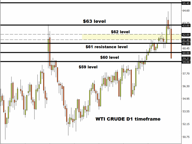 In regards to the technical picture, WTI Crude could extend losses towards $59 if $60.50 proves to be an unreliable support level.