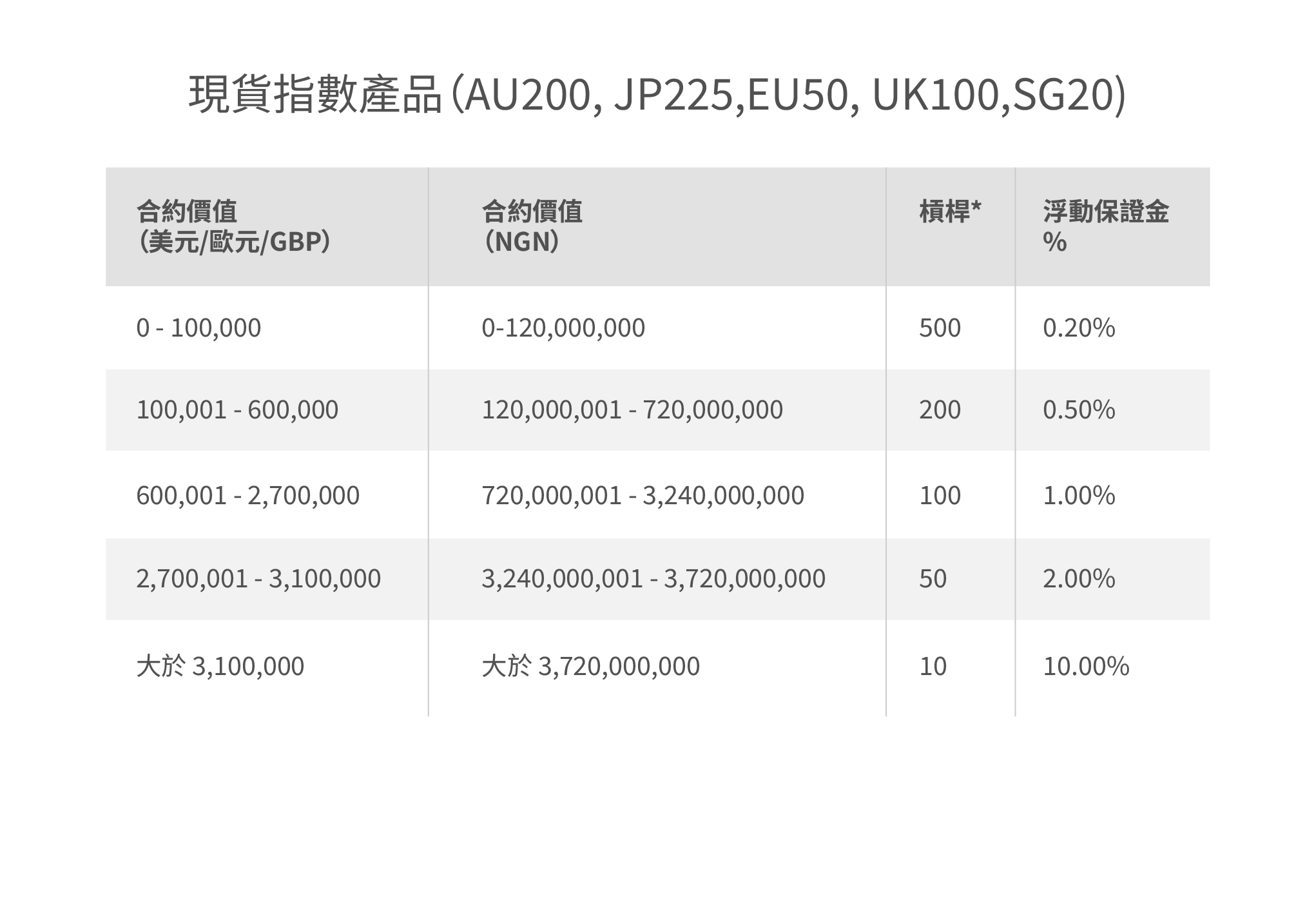 | 保證金規模 | 最高 500 倍 |