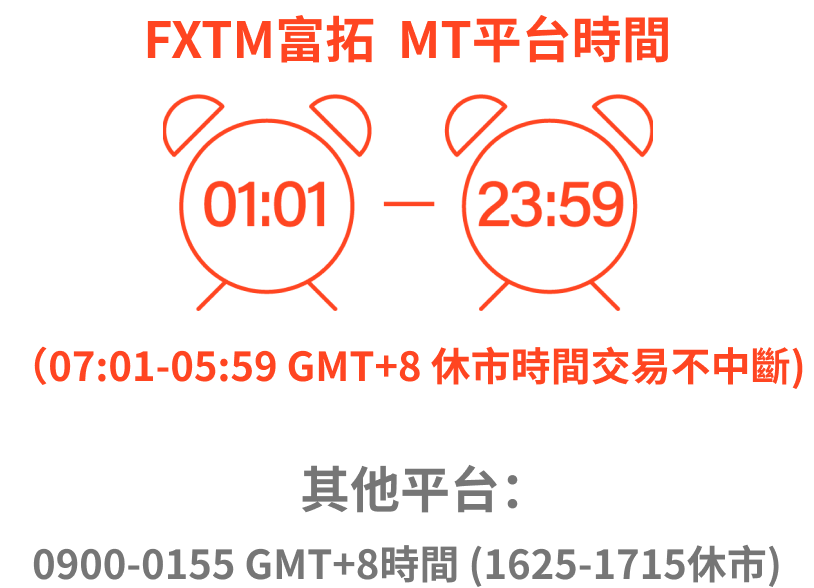 | 周五交易時間 | MT平台時間 01:01 - 23:55 |