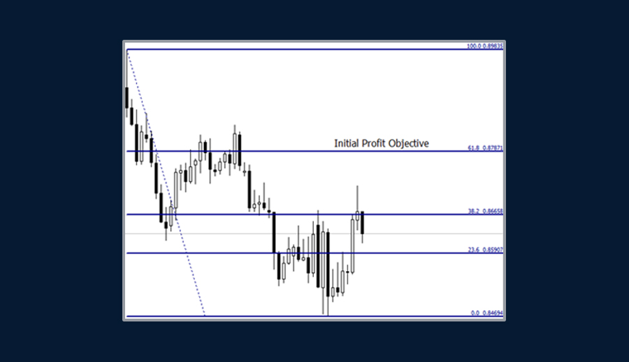 獲利了結更為主觀,因為它提供了不同的選擇。初始利潤通常是倉位的50%,可以在形態的高點(點A)和低點(點D)之間的0.618處獲利了結,其余的可以使用0.382追蹤損或價格突破趨勢線時獲利平倉。